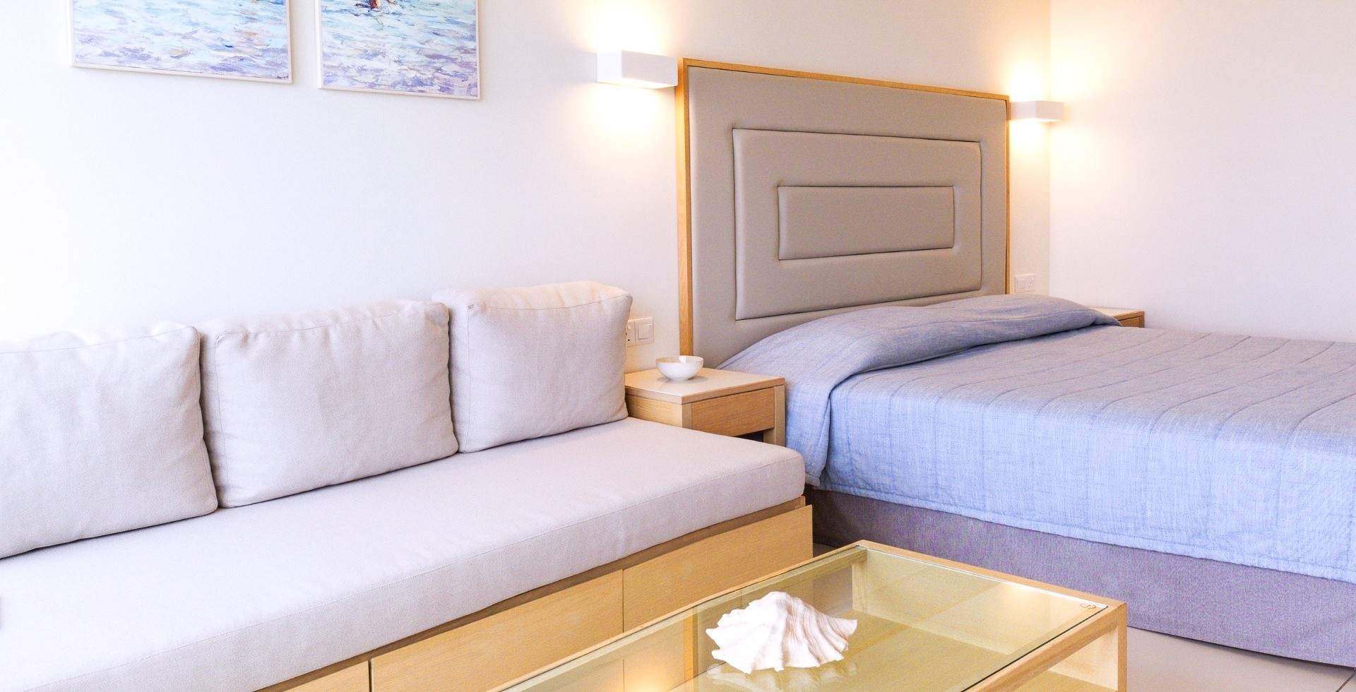 - családi szobák - hálószoba tolóajtóval elválasztva, kanapéágy a gyerekeknek, tengerre nézők