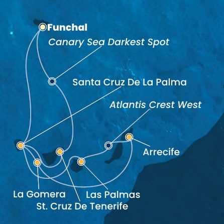 - Funchal (Madeira)->Santa Cruz (Tenerife)->SPC->GOM->Arrecife (Lanzarote)->Las Palmas (Gran Canaria)->SPC->Funchal (Madeira)