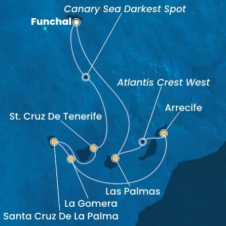 - Funchal (Madeira)->Santa Cruz (Tenerife)->SPC->GOM->Arrecife (Lanzarote)->Las Palmas (Gran Canaria)->Funchal (Madeira)